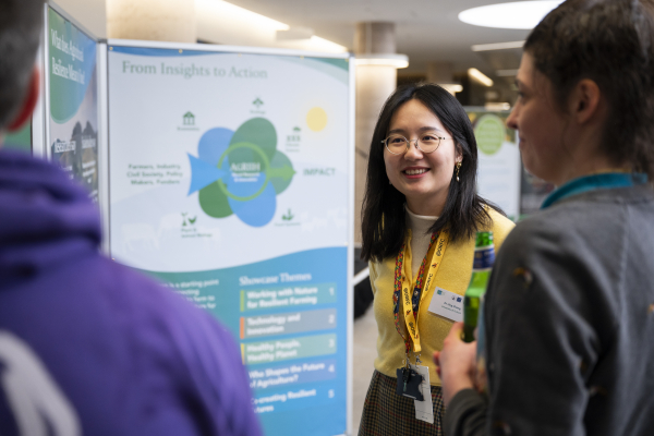 Dr Jing Zhang, Project and Knowledge Exchange Lead for AGRIIH, at the Research Showcase. Photography by John Cairns.